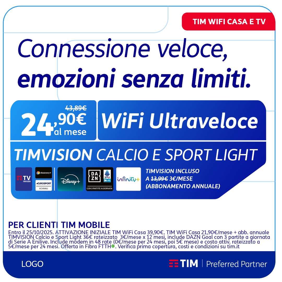 Inserendo i miei dati personali, autorizzo a contattarmi per ricevere assistenza e informazioni sulle offerte TIM. Dichiaro di aver preso visione dell'informativa privacy, di essere maggiorenne, di essere l'intestatario o il legittimo utilizzatore del numero fornito e di essere a conoscenza delle sanzioni previste dalla vigente normativa in caso di rilascio di dichiarazioni mendaci.