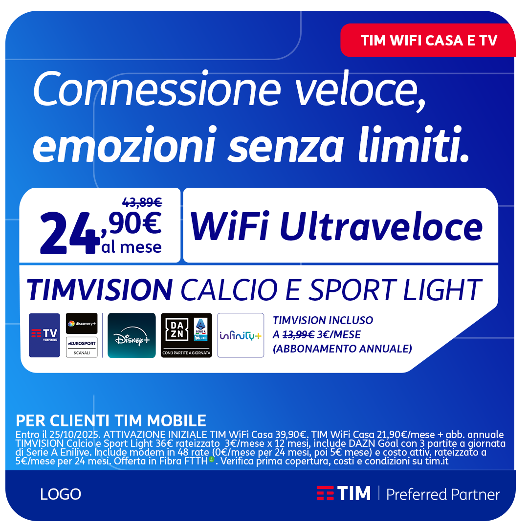 Inserendo i miei dati personali, autorizzo a contattarmi per ricevere assistenza e informazioni sulle offerte TIM. Dichiaro di aver preso visione dell'informativa privacy, di essere maggiorenne, di essere l'intestatario o il legittimo utilizzatore del numero fornito e di essere a conoscenza delle sanzioni previste dalla vigente normativa in caso di rilascio di dichiarazioni mendaci.